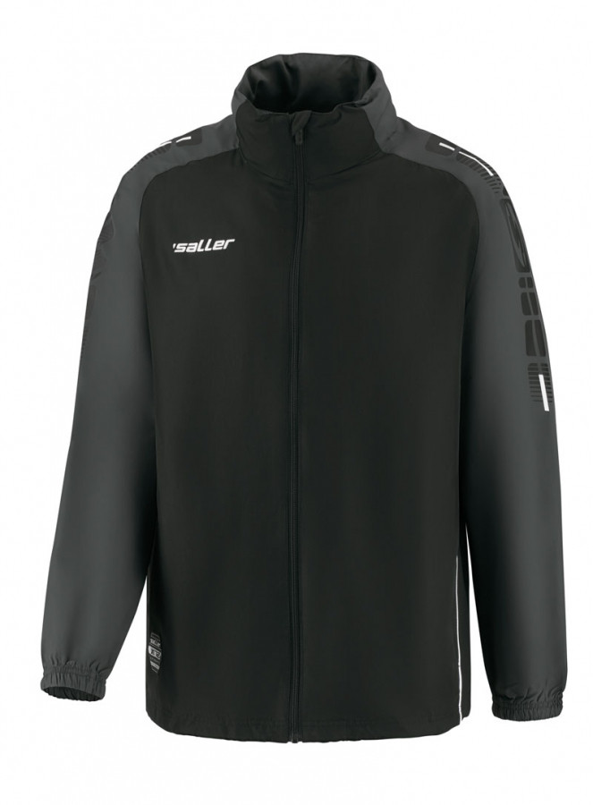 Vysoce kvalitní nepromokavá bunda SALLER X.72 s povrchovou úpravou proti větru a vodě na vnitřní straně bundy je vhodná pro fotbalový trénink při nepříznivém počasí. V oblasti lopatek je umístěna síťovinová vsadka (podšívka). Dvě boční kapsy na zip, v límci je uschovaná kapuce a rukávy zakončeny lemem. V pase je stahovací šňůrka se zarážkou. Bunda je vodě a větruodolná.