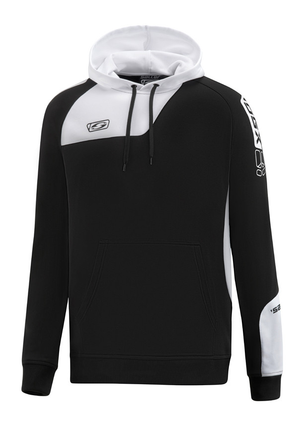Sportovní mikina s kapucí a klokankou SALLER ICON. Moderní sportovní střih a rukávy jsou šity do raglanu. Kapuca je opatřena šňůrkou na stažení a rukávy i mikina jsou zakončeny pružným lemem. Vnitřní strana mikiny má úpravu z tenkého flísu příjemnou na nošení. Materiál: 100% Polyester