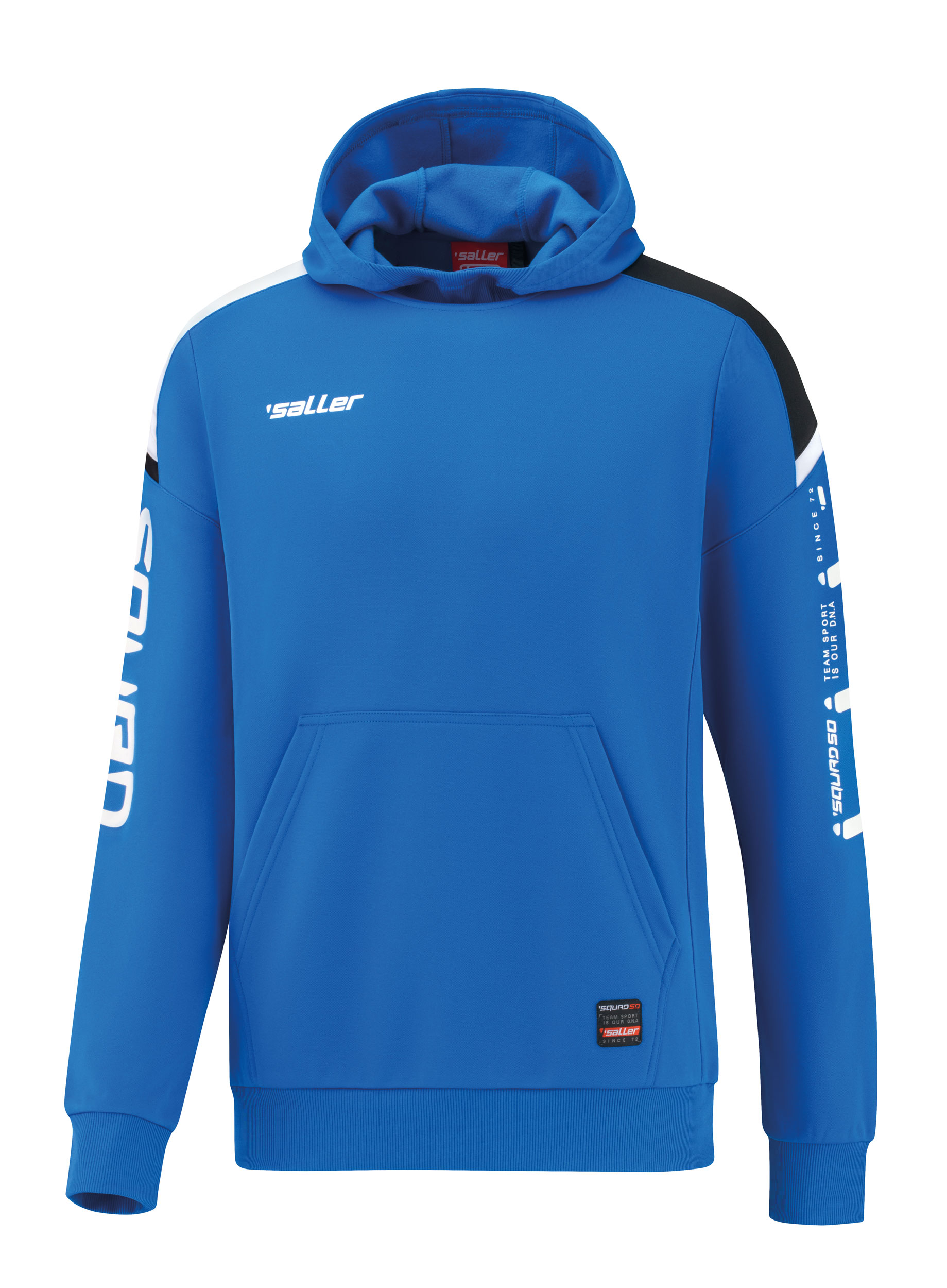 Sportovní mikina s kapucí a klokankou SALLER SQUAD50 Moderní sportovní střih a rukávy jsou šity do raglanu. Kapuca je opatřena šňůrkou na stažení a rukávy i mikina jsou zakončeny pružným lemem. Vnitřní strana mikiny má úpravu z tenkého flísu příjemnou na nošení.