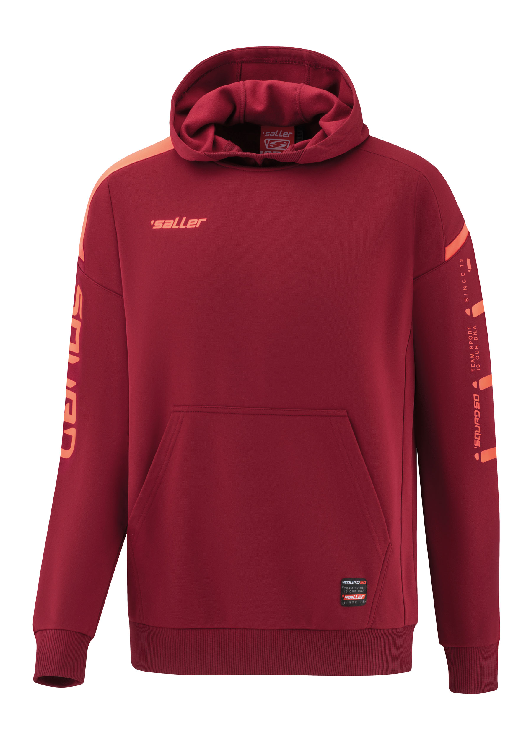 Sportovní mikina s kapucí a klokankou SALLER SQUAD50 Moderní sportovní střih a rukávy jsou šity do raglanu. Kapuca je opatřena šňůrkou na stažení a rukávy i mikina jsou zakončeny pružným lemem. Vnitřní strana mikiny má úpravu z tenkého flísu příjemnou na nošení.