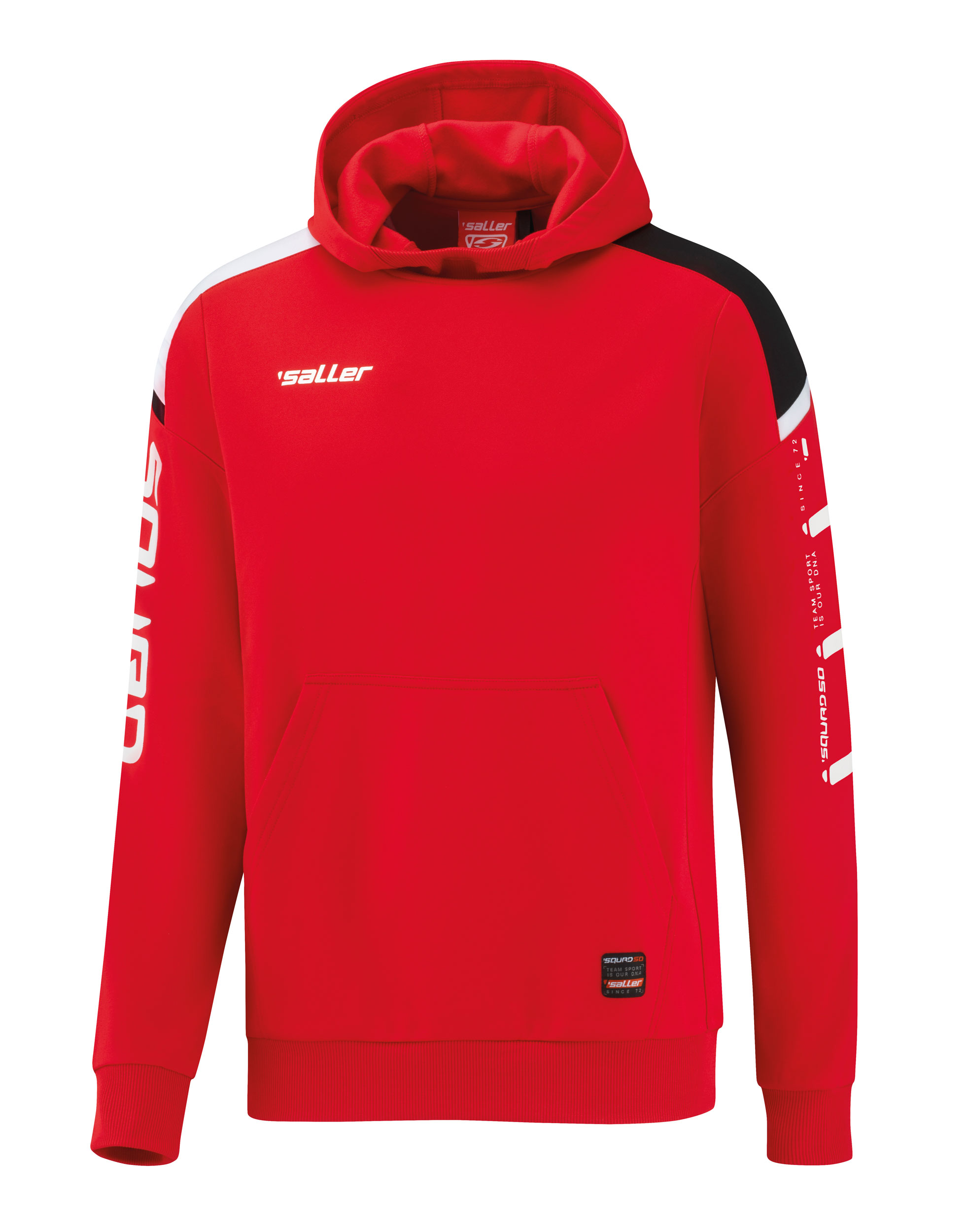 Sportovní mikina s kapucí a klokankou SALLER SQUAD50 Moderní sportovní střih a rukávy jsou šity do raglanu. Kapuca je opatřena šňůrkou na stažení a rukávy i mikina jsou zakončeny pružným lemem. Vnitřní strana mikiny má úpravu z tenkého flísu příjemnou na nošení. Materiál: 100% Polyester