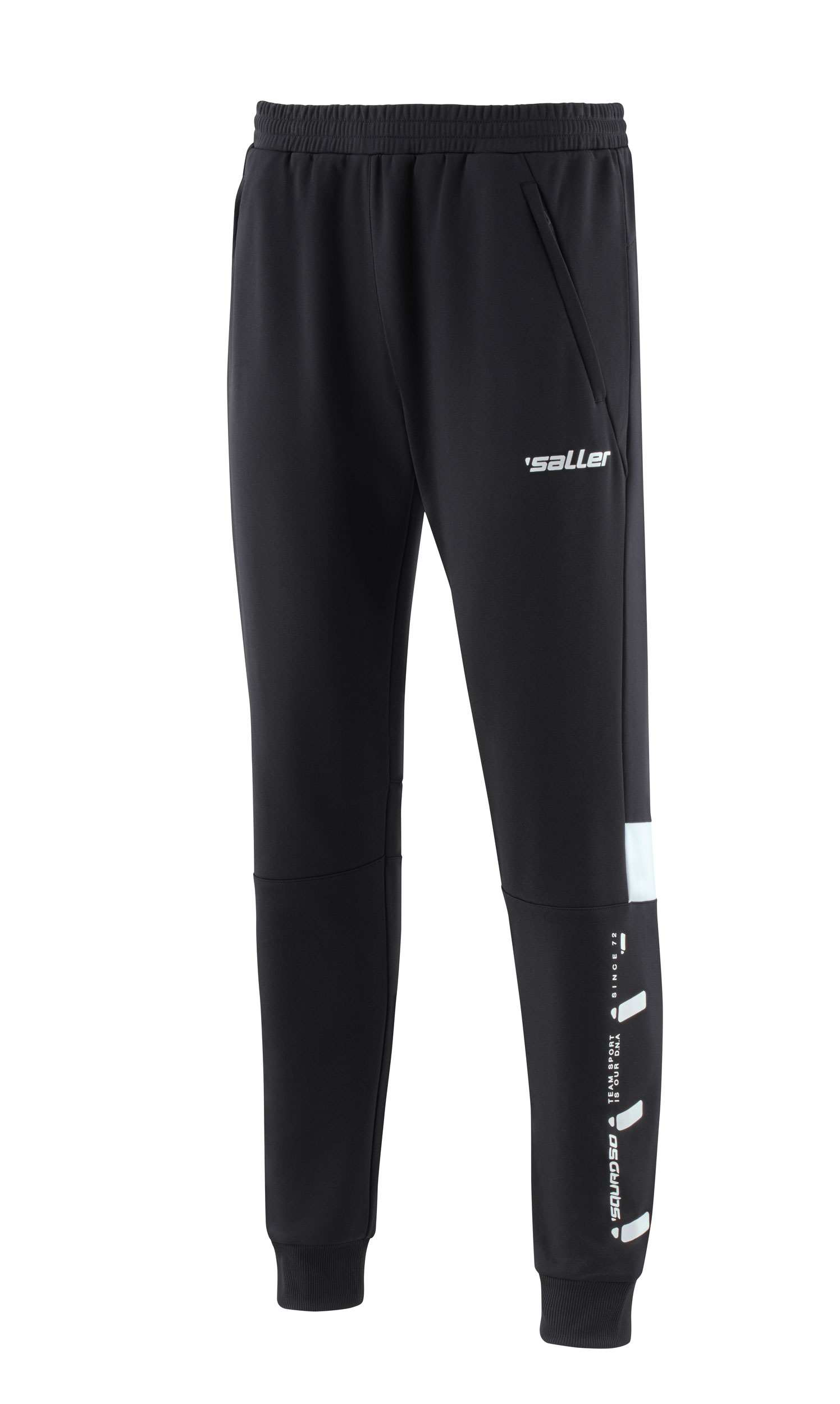 Tepláky SALLER z modelové Squad50 jsou klasického střihu. Pas je zakončen širokým lemem se stahovací šňůrkou, nohavice jsou zakončeny širokým lemem. Tento model tepláků je určena spíše jako týmové oblečení nebo na volný čas.